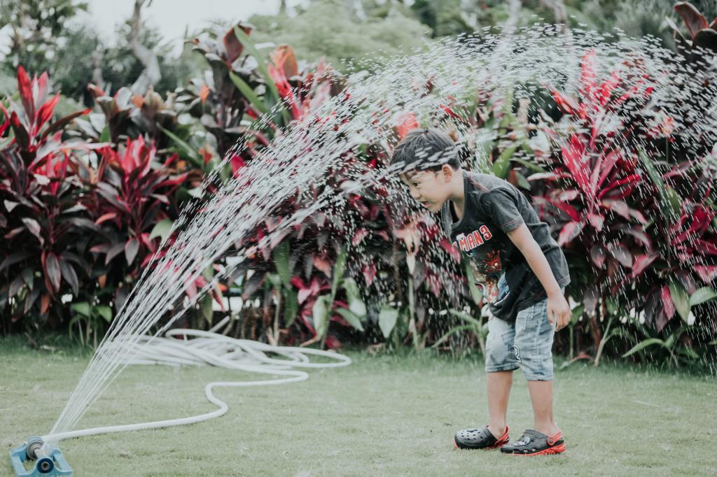 Though we went to the beach often when I was a child, during the summer my sisters and I would also play with the water hose. We had a myriad of different attachments for the hose, some sprayed water up and down, and some all over. Often, we would simply just attach the sprinkler to the hose and use that. Running back and forth across the lawn, jumping over the sprinkler, time and again.