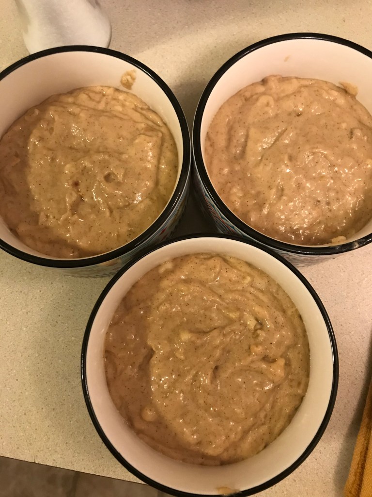 On tonight’s baking agenda? Vegan banana peanut butter bread. Now, I don’t eat too many carbs today, as they tend to like to stick around, if you know what I mean, yet, I will keep a small portion of the bread for me, freeze it, and eat it over time. Yummy.