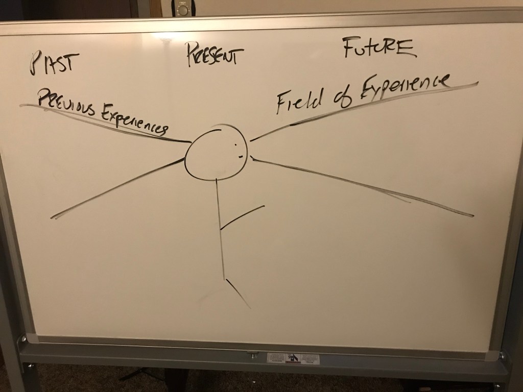 Here is a simple picture of how I view the field of experience. Yes, yes, I know, I’m not an artist. Well, not that kind of artist. You know, writing is an art. Anyway, I digress, here we go.