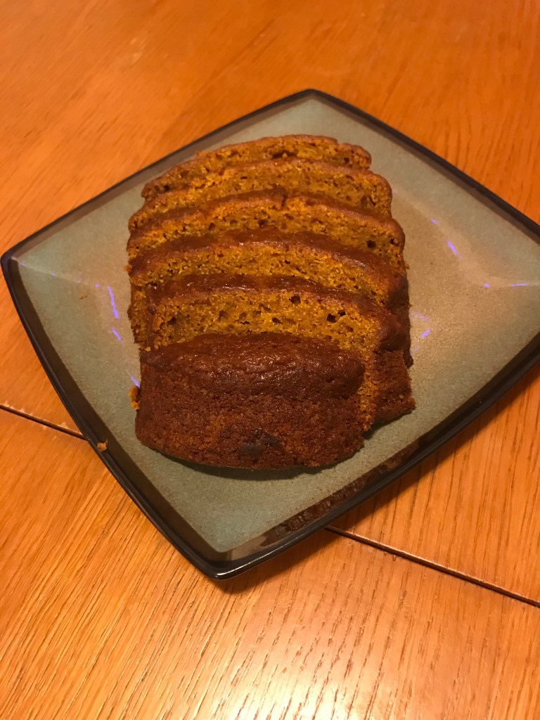 Alright, Justin’s birthday was this past week, so he was over Saturday night, and I made a spinach salad with baked tofu (breaded with panko and slightly fried), and brown sugar butternut squash bread.